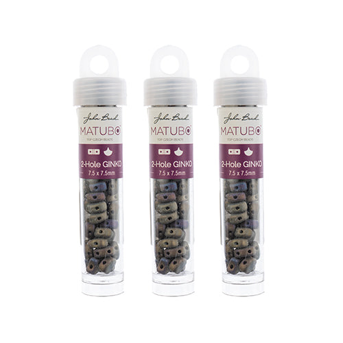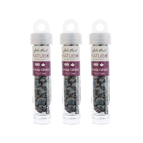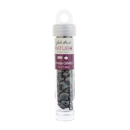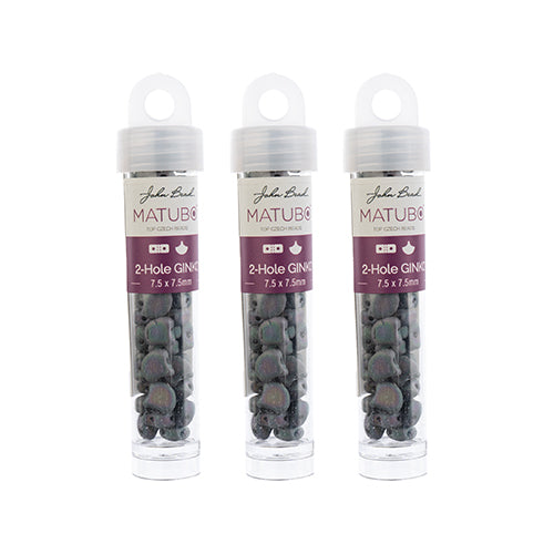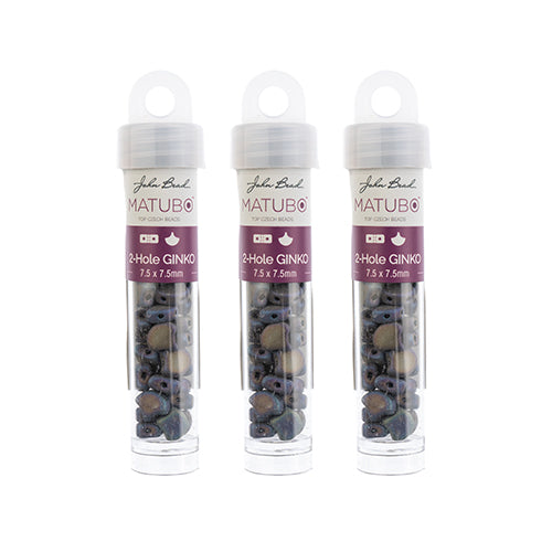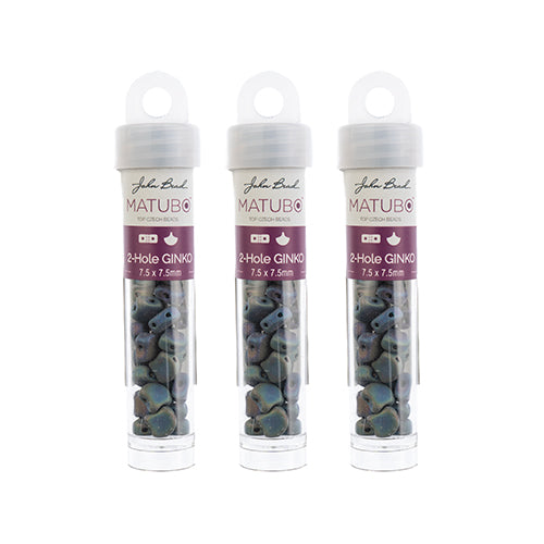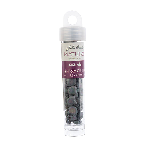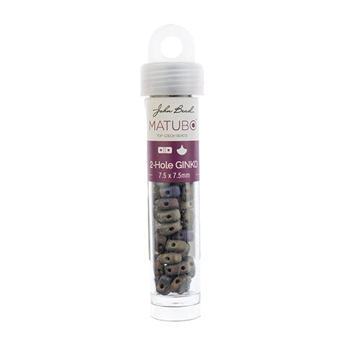 Matubo Czech Ginko 2-Hole apx. 12g vials Jet Iris Shades