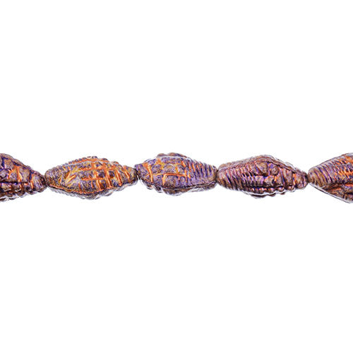 Czech Pressed Glass Seashell Bead Strand 16x8mm Brown on Alabaster White 12pc