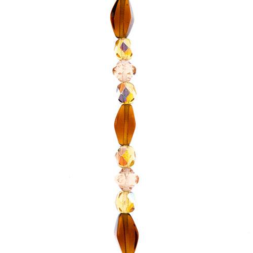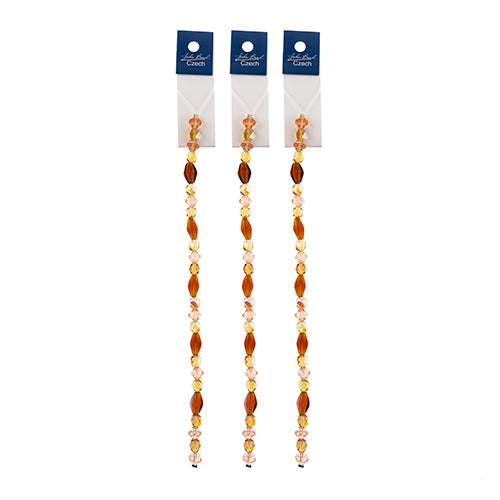 Czech Glass Beads 7in Strand Assorted Shape/ Size Amber Honey