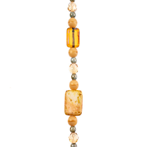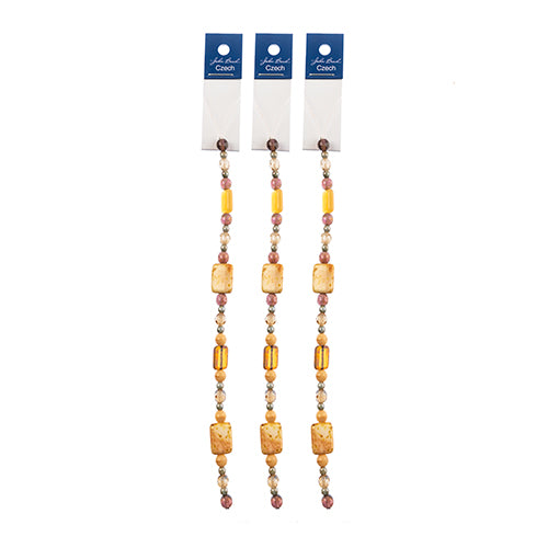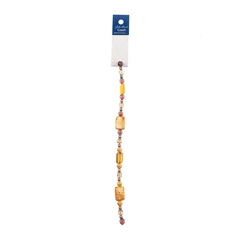 Czech Glass Beads 7in Strand Assorted Shape/ Size Beige Bricks