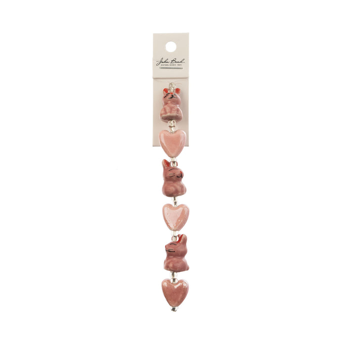 Ceramic Beads Rabbit Pink with Red Heart 13x21mm 3pcs
