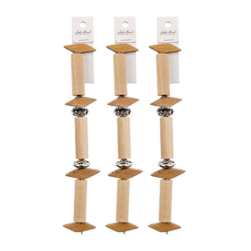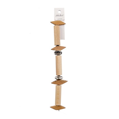 Wood Tube and Triangle Beads w/Metal Spacer Bead 7in strand