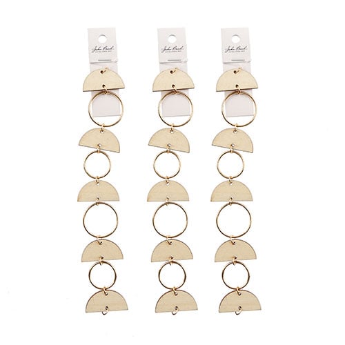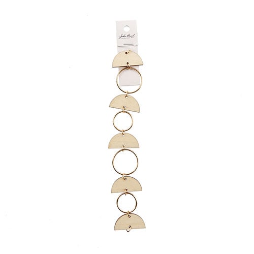 Wood Semicircle Bead with Metal Gold Circle 7in strand