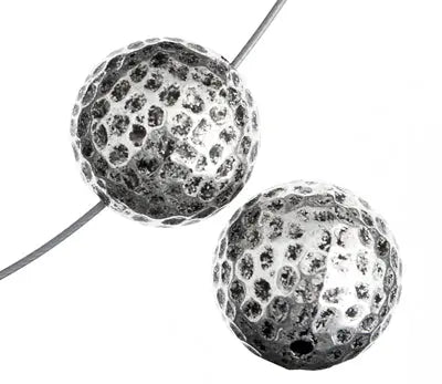 Metalized Bead W/ Sterling Silver Coating 14mm Round Antique Silver