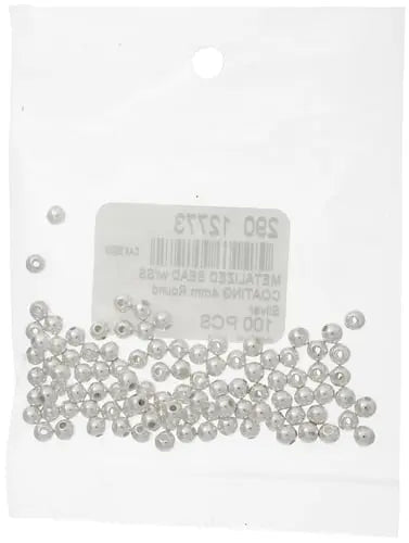 Metalized Bead W/ Sterling Silver Coating Round Smooth