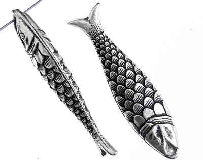 Metalized Pendant W/ Stainless Steel Coating 45x10mm Scaley Fish Antique Silver