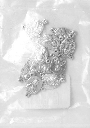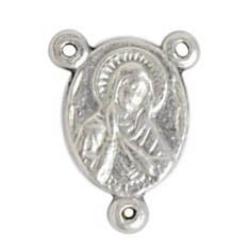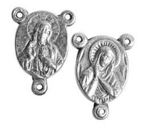 Religious Pendant 3 Hole Sacred Heart / Mary 12x16mm Nickel