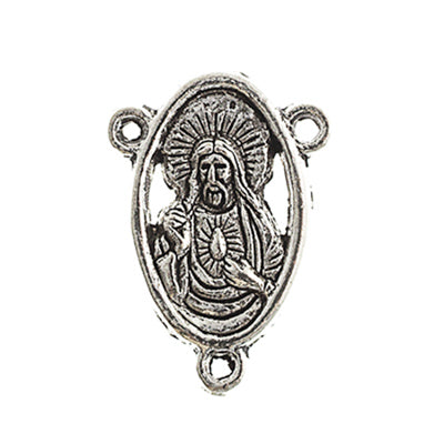 Connector- Religious Scared Heart 15x20mm Antique Silver 10pcs