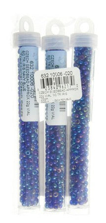 Czech Seedbead Approx 22g Vial 6/0 - Blue Shades