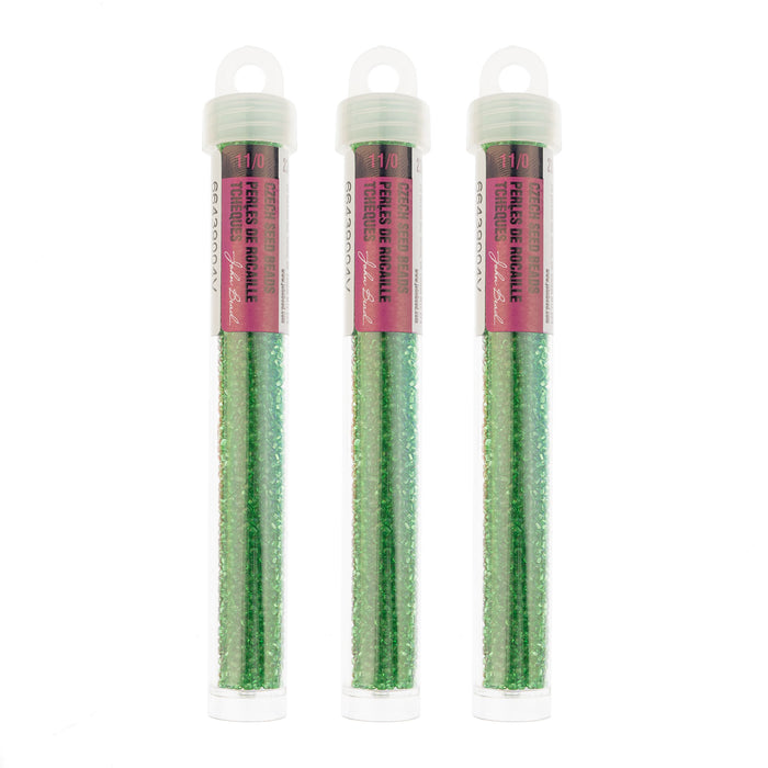 Czech Seed Bead 23g Vial 11/0 Transparent Lime Green Square Hole