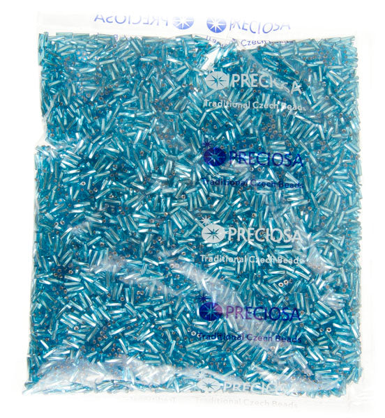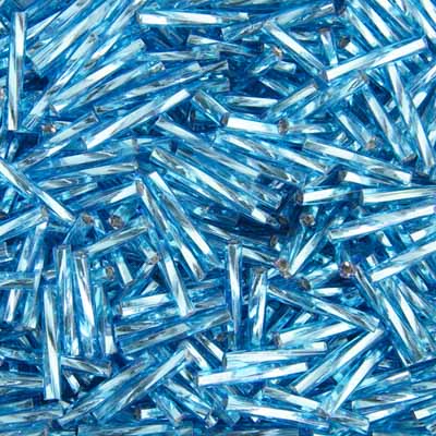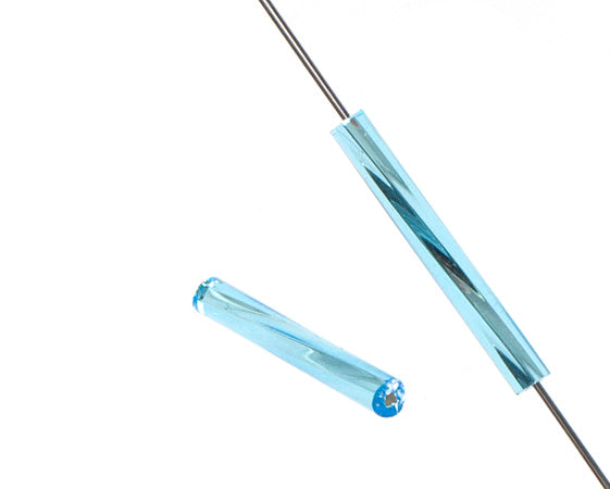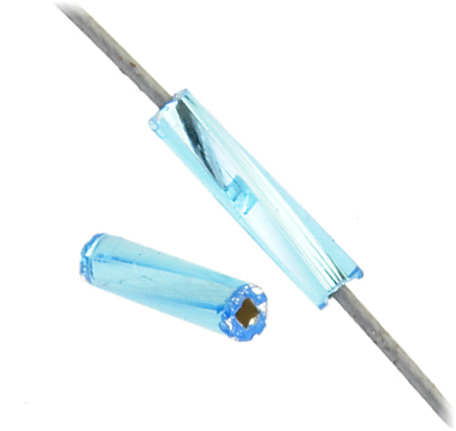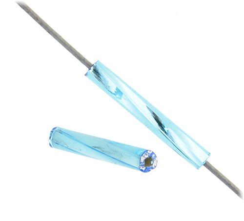 Czech Twisted Bugles Silver Lined Aqua