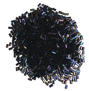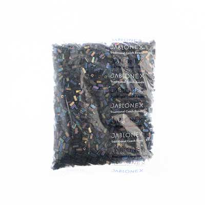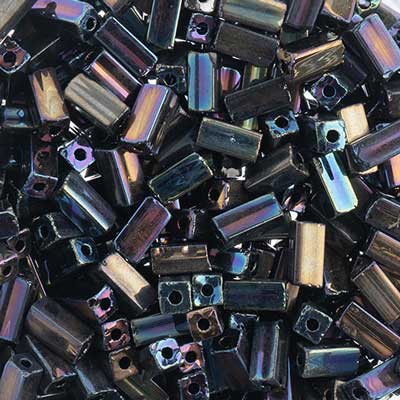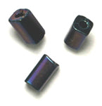 Czech Tubes Square Beads 7x3.4mm Opaque Black Aurora Borealis
