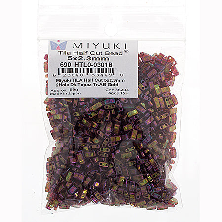 Miyuki Tila Half Cut 5x2.3mm 2-hole Transparent Dark Topaz AB Gold Luster