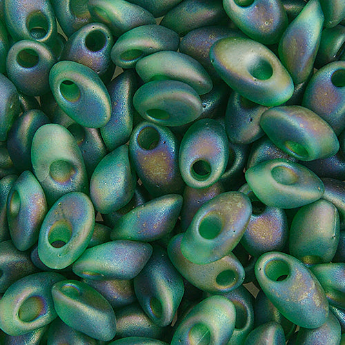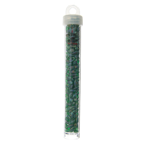 Long Magatama 4x7mm Green Opaque Iris Matte - 22g Vial