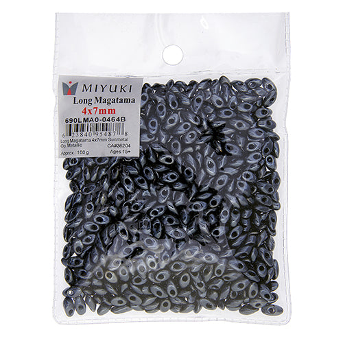 Long Magatama 4x7mm Gunmetal Opaque Metallic - 100g Bag
