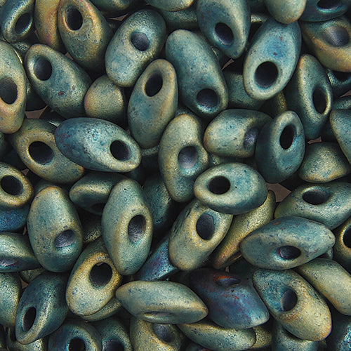 Long Magatama 4x7mm Green Blue Opaque Matte Metallic Frost - 22g Vial