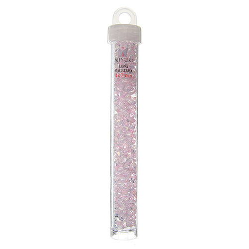 Long Magatama 4x7mm Crystal Transparent Pink Lined Luster Iris - 22g Vial