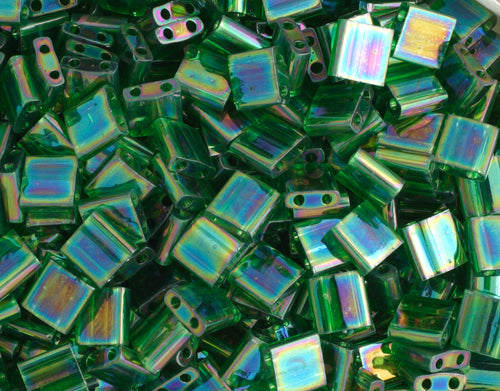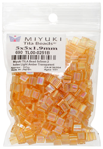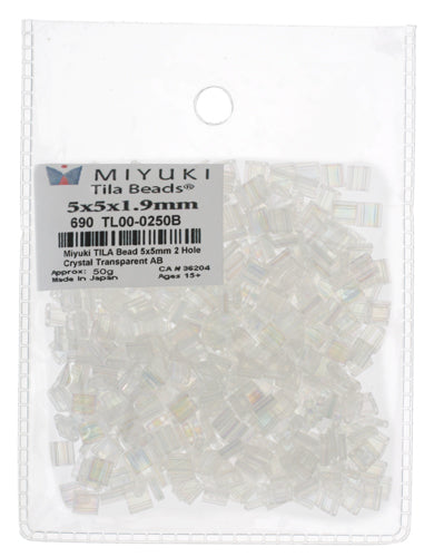 Miyuki Tila Bead 5x5mm 2-hole Transparent Aurora Borealis
