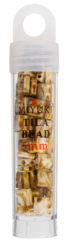 Miyuki Tila Bead 5x5mm 2-hole Opaque White with Walnut Picasso