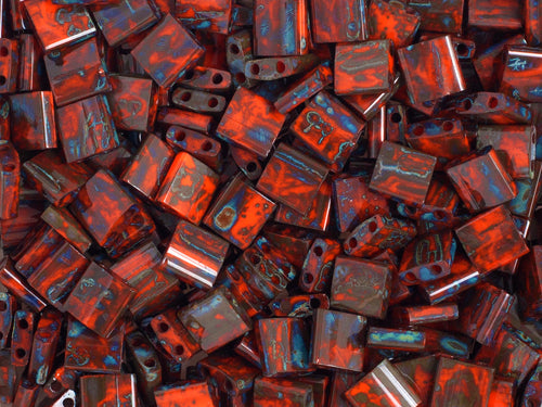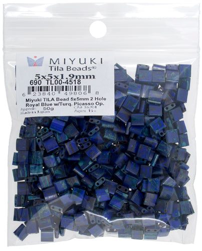 Miyuki Tila Bead 5x5mm 2-hole Opaque with Turquoise Picasso