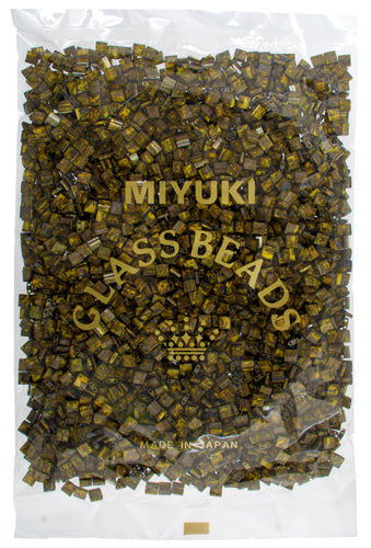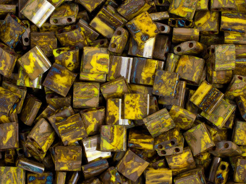 Miyuki Tila Bead 5x5mm 2-hole Opaque Yellow Brown with Yellow Picasso