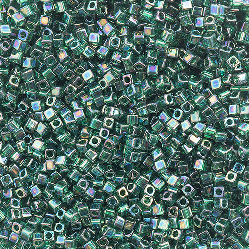 Miyuki Square/Cube Beads 1.8mm Dark Green Transparent AB