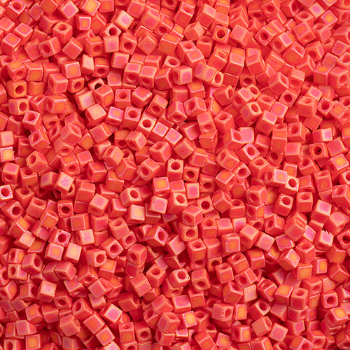 Miyuki Square/Cube Beads 1.8mm Red Vermillion Opaque AB Matte