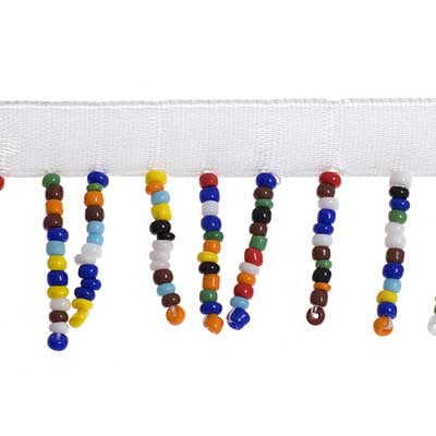 Bead Fringe 2cmm White Ribbon Multi Colored Beads