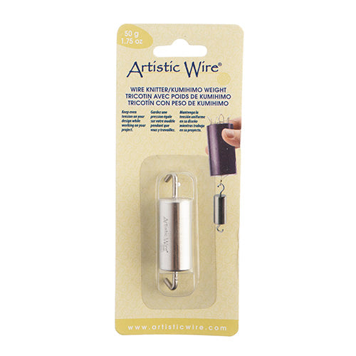 Use the Artistic Wire Knitter/Kumihimo Weights with the Knitter Tools to keep an even tension on your project. Hook the weights loop onto your wire or thread as you start your project, and it will give just enough pull to keep your design consistent. Use both weights together if more pressure is needed.