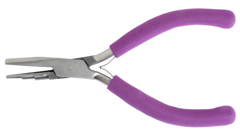 Professional pliers for wire wrapping with graduated sizes for making jump rings.