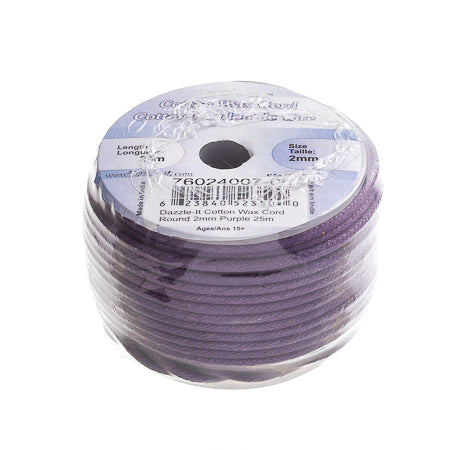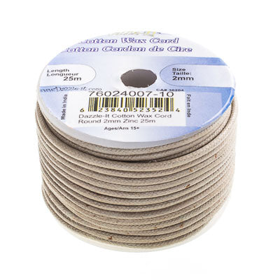 Dazzle-It Cotton Wax Cord 2mm Round 25m Spool