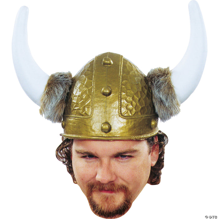 Fun eye-catching addition to your Halloween costume! Our Adult Viking Helmet can be worn with a historical outfit, a fierce Warrior costume, or an operatic character look! Durable dull golden plastic Helmet has 2 detachable white plastic fur-trimmed Horns. One size fits most adults.