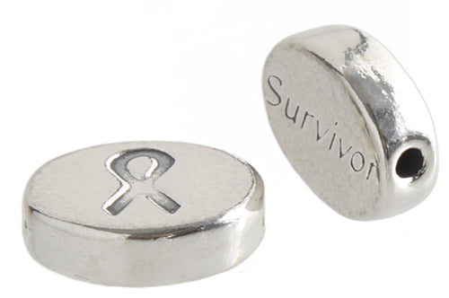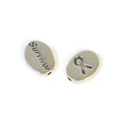 SS.925 Oval Meassage Bead 11mm Survivor/Breast Cancer Ribbon