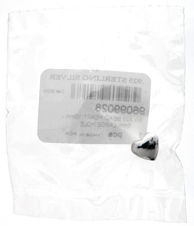 SS.925 Bead Heart 10mm - 5mm Large Hole