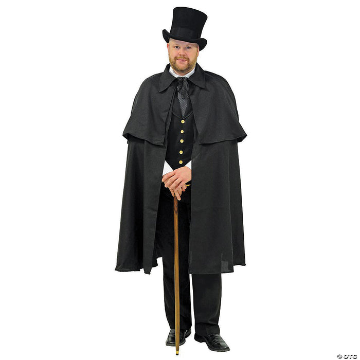 Be a proper Victorian gent in this classic cape. You'll look like a character in a Charles Dickens novel! It is great for Dickens Christmas costumes and Halloween ensembles. Featuring a real vintage look, it has an authentic tiered design and a cloth tie fastener at the neck. Medium weight. Polyester. Approx. 44" long. One size fits most adults.