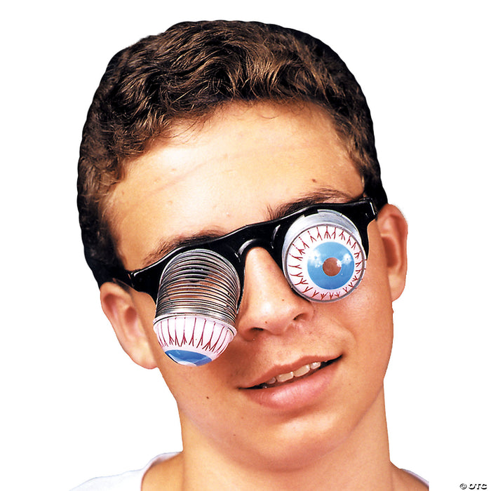 These geek glasses would be the perfect accessory to your clown costume. Heavy plastic frames with slinky type springs eyes attached.