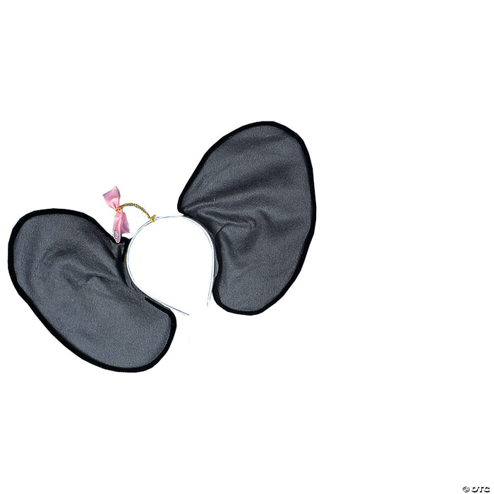 Huge grey felt ears on an adjustable band, with pink bow.