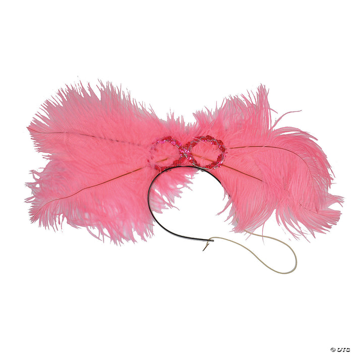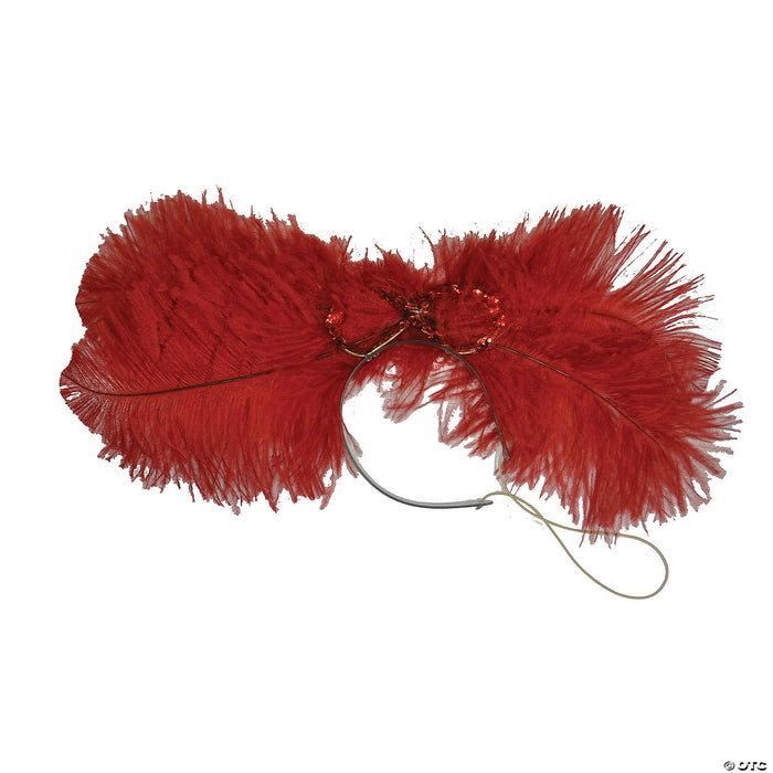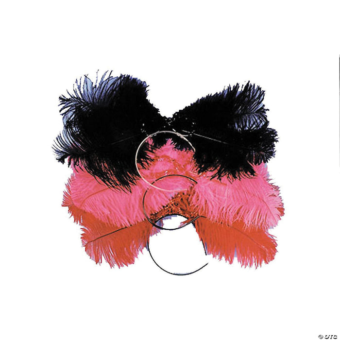 Ribbon design with sequins and large, full feathers. A must-have for the old west saloon girl or Moulin Rouge dancer.