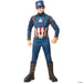 Now your child can become Captain America from the blockbuster movie Avengers: Endgame! Costume includes Padded jumpsuit with attached shoe covers and mask.
