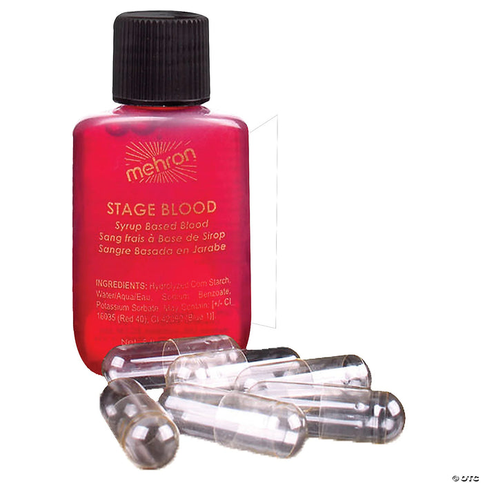 Includes: 5oz.of Mehron Stage blood and 6 capsules.