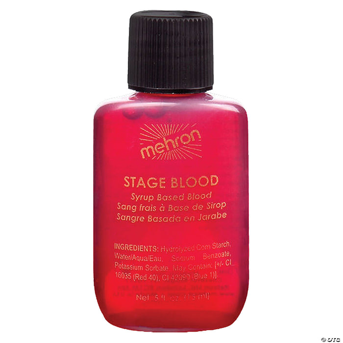 Mehron Capsules with Stage Blood. Mehron's professional syrup-based blood for fresh blood effects. Stage Blood will not dry, so the blood will continue to drip and retain its wet finish. Safe, edible, and vegan, ideal for blood capsules to create a bleeding mouth effect. A viscous, lifelike, nearly opaque liquid that is non-toxic and so safe it's even edible. Great effect for creating running or dripping blood. Super realistic, Oozes and clots, washes off easily.