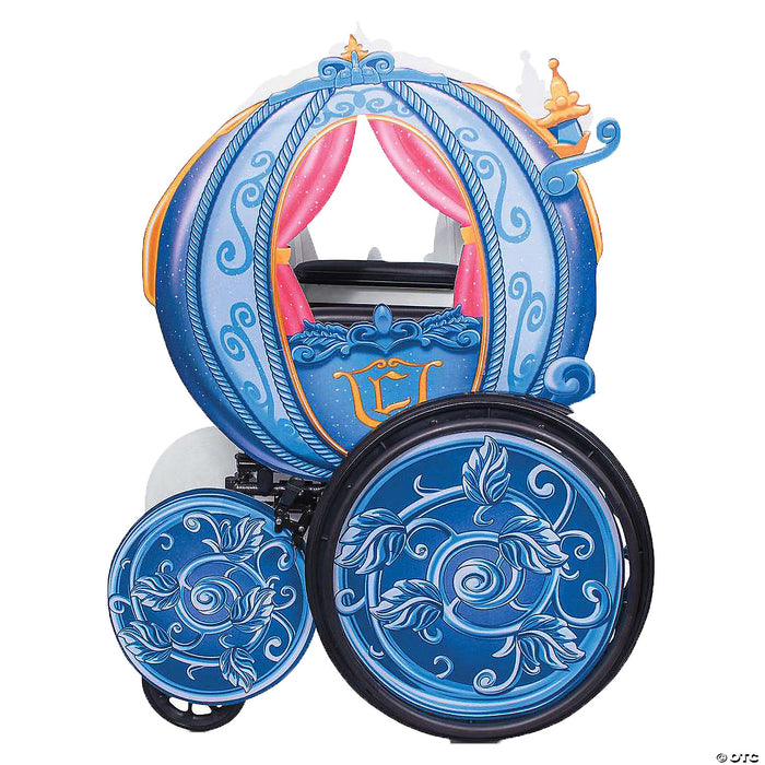 Disney Princess Carriage Adaptive Wheelchair Cover. Your little fairytale princess will be all smiles in this enchanting Cinderella Coach Wheel Chair Cover Costume.. Bring your childs magical fairytale story to life! The Cinderellas Princess Carriage Wheelchair Cover features four blue wheel coverings with printed pumpkin vine design and two printed carriage pieces. This wheelchair cover measures 53 Height and 42 Length. Includes plastic piping and self-stick fabric strips to help secure the pieces. Easy assembly. Fits most standard wheelchairs. Officially Licensed.