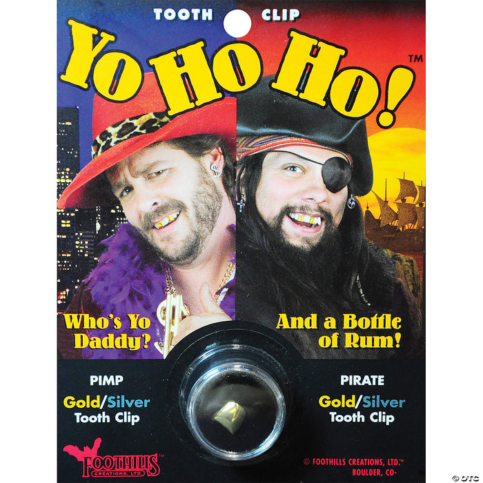 Great accessory for a pimp or a pirate character! Gold clip-on tooth cover has no metallic taste.