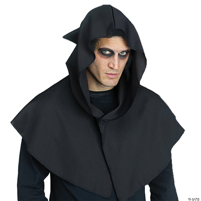 This Hooded Capelet will complete any mysterious, evil, or medieval look. This capelet is unisex and will help to create an era of mystery and suspense. Perfect for a skeleton, reaper, or medieval monk.