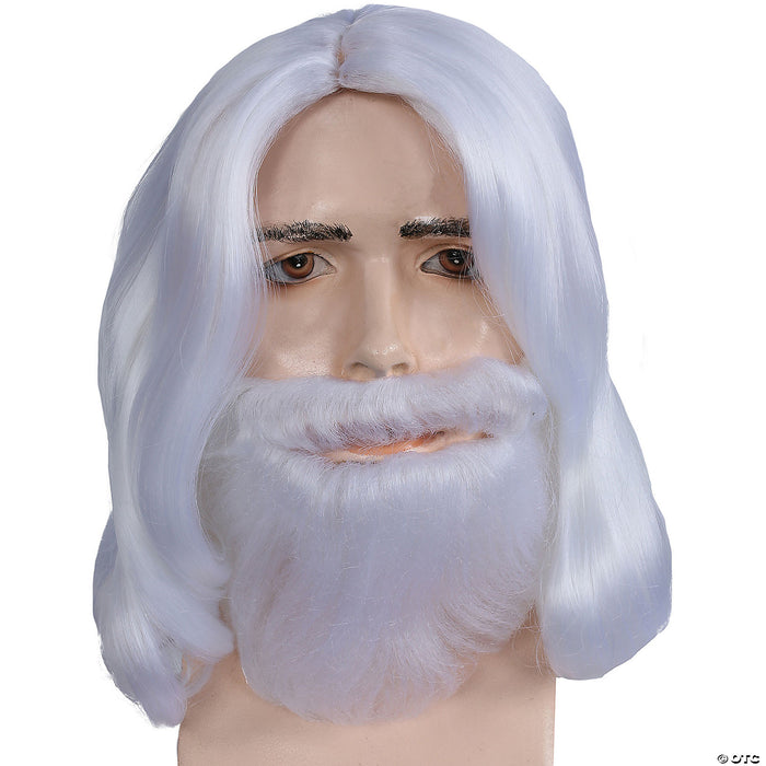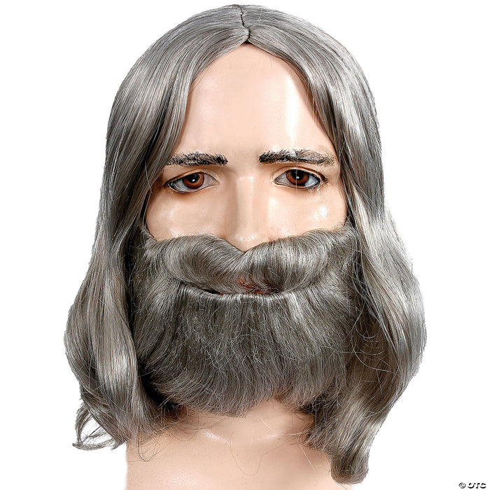 Fine long wig with beard and mustache on a strap. Excellent Jesus set. Also good for apostles and other Biblical figures. Synthetic wig fits most adults.