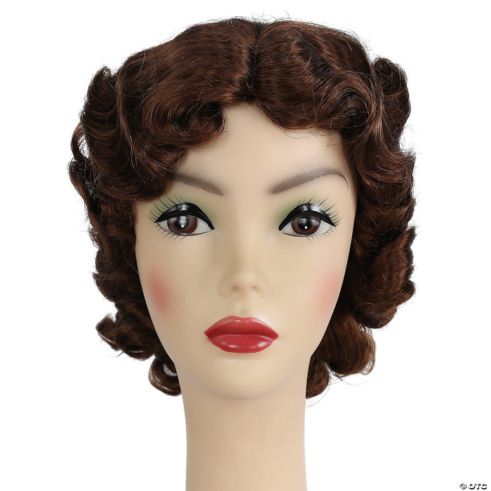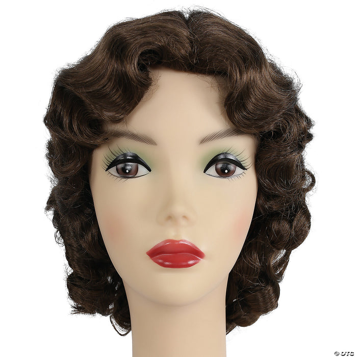 New longer fingerwave like Jean Harlow and other 1930s starlets wore. Wear it with large curls in the back or easily brush it out for a big fluff. Excellent Baby Jane Hudson. Skin part, synthetic wig fits most adults.