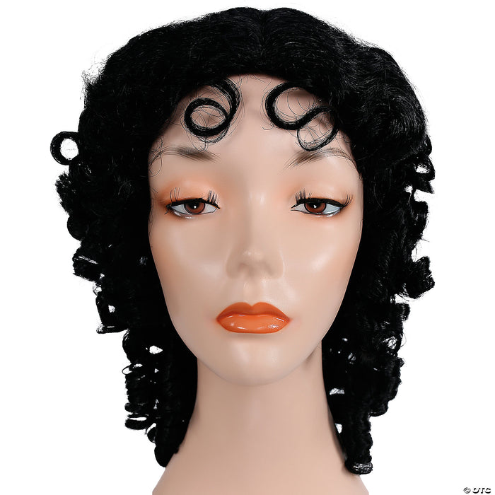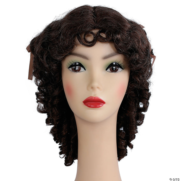 A lovely southern belle with extra fancy ringlets and a wavy crown with a skin part. Good for civil war reenactments plays and historical costume looks. Synthetic wig fits most adults.