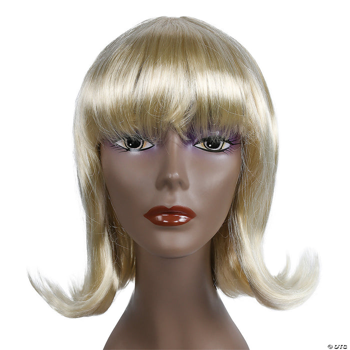 Pert and pretty! Short flipped-up curls that are perfect for many 60's characters. Short bangs frame the face. Synthetic wig fits most adults.