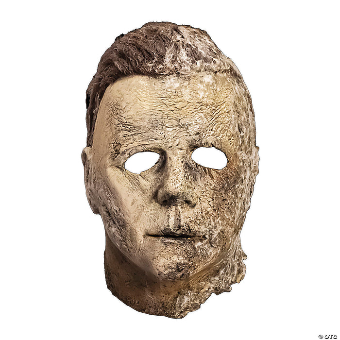 From the 2022 film Halloween Ends, this mask comes directly from the movie master of the mask worn by Michael Myers in Halloween Ends! The mask features extreme weathering details including a mold effect. Mask measures approximately 26" around at the brow. Material: Latex.