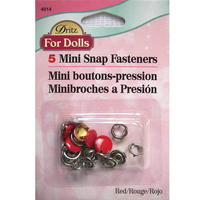 5 sets per package. Size 11, 8mm snaps used to fasten miniature/doll size shirts, jackets, waistbands or straps.